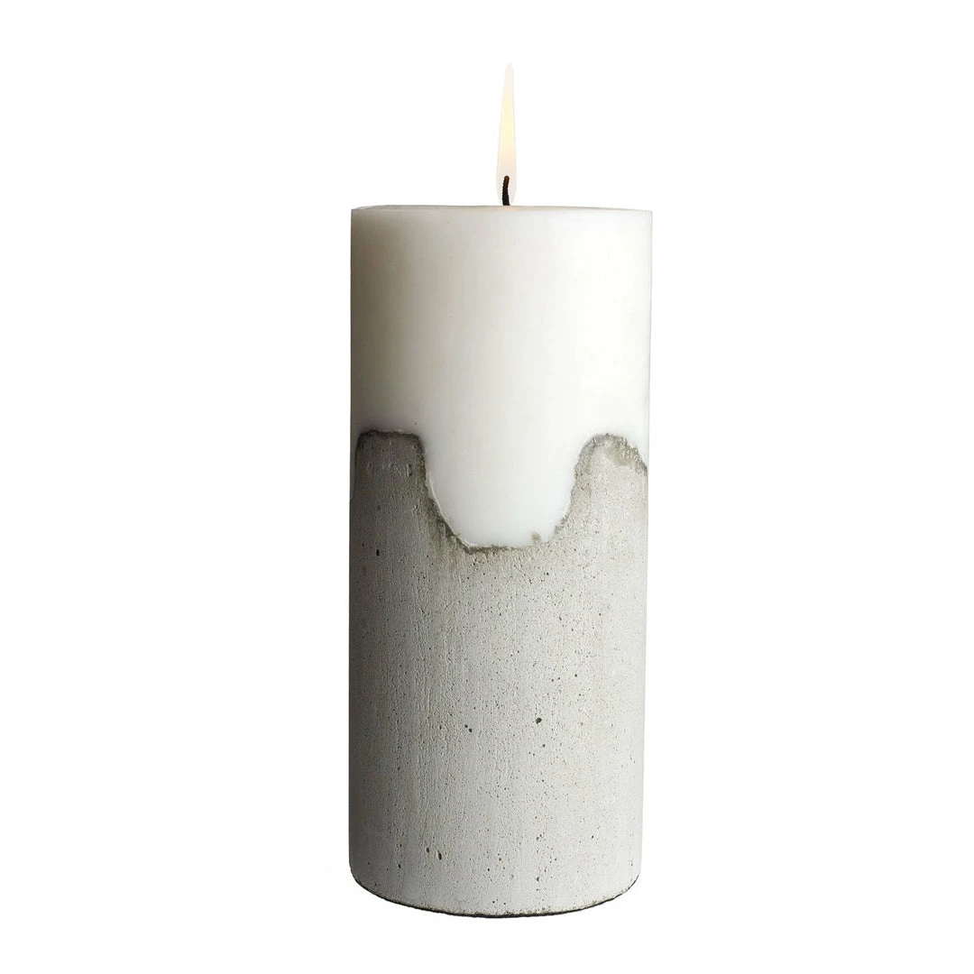 Each Pylon pillar candle is hand cast with a cement base that is topped with our high quality wax pillar candles. Each piece is unique, as the organic shape of the cement melds with the wax top in its own way. Burn time for small and medium candle is 72 hours; tall is 96 hours.