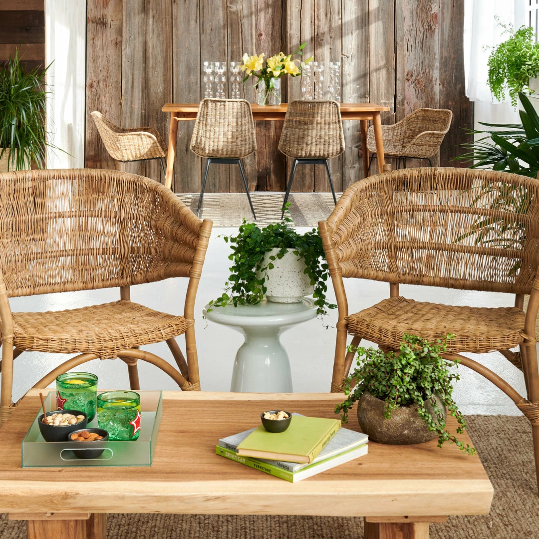 The arms of this chair envelope you. The seat curves ever so subtly. The natural rattan gives to every movement. This chair is like a wellmixed cocktail, one quick sip or sit and you will relax for hours.