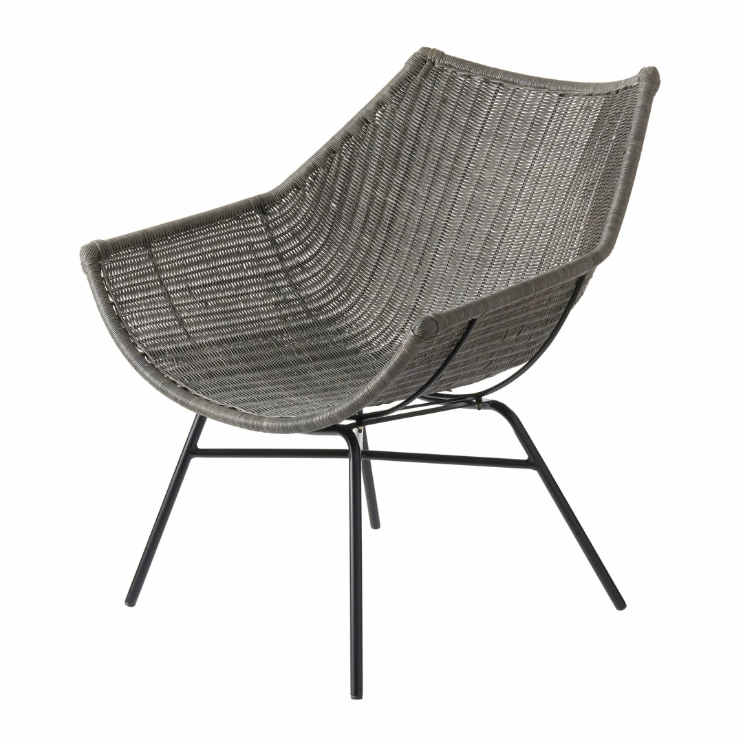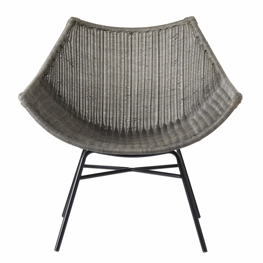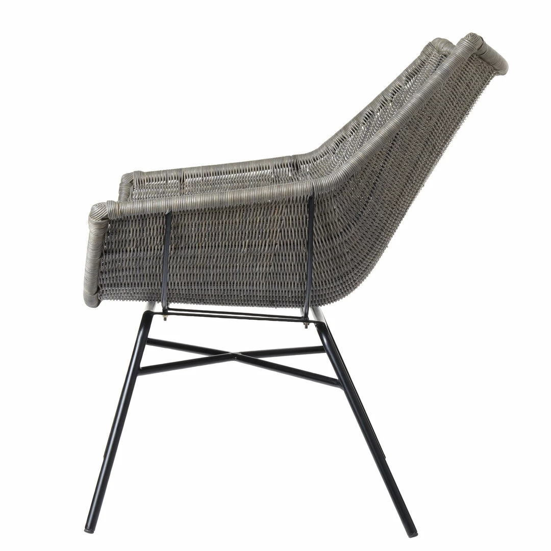 The Kamala chair is broad and inviting. Ideal for conversation but just large enough that you can curl up in it with a good book. Gray-stained rattan, clean curves, a comfortable scoop to the shape. This chair welcomes you with open arms.