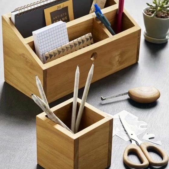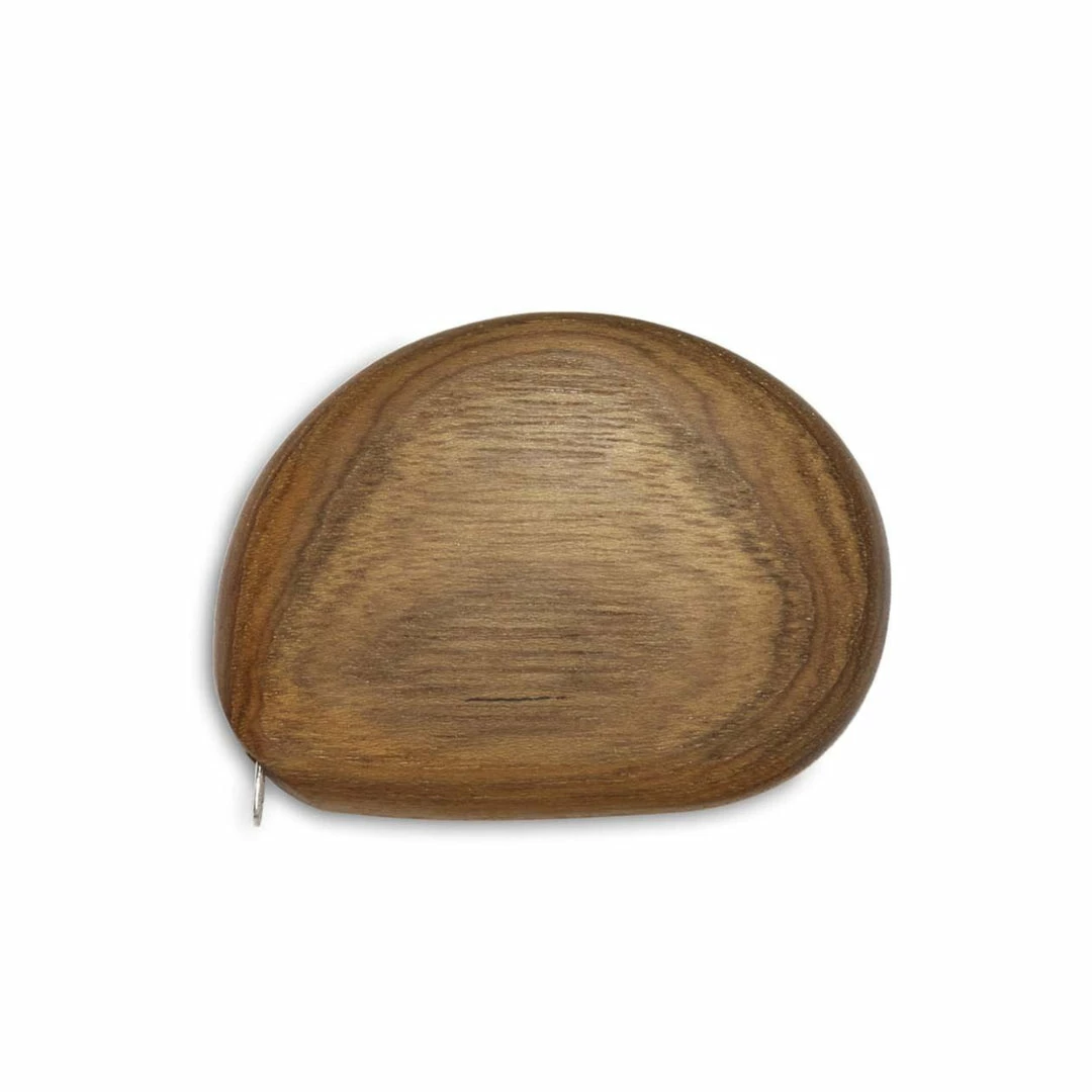 Takara desk accessory collection. Made of smooth sanded golden-toned teak wood, each tape measure is shaped to fit perfectly in the palm of your hand like a weather-word pebble from the beach. Each retractable tape measure is 79 inches long.