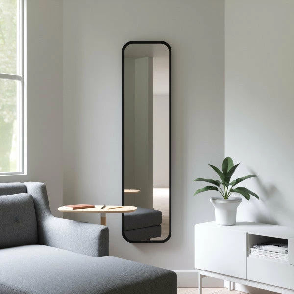 WALL MOUNTED OR LEANED UP AGAINST WALL: Designed by Umbra Studio, this versatile mirror leans against the wall or can be wall-mounted depending on your needs. Its lightweight design makes it easy to carry and move around to best fit your space