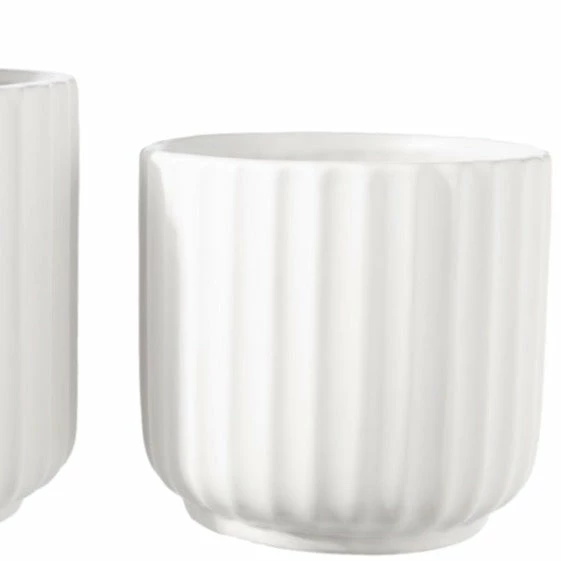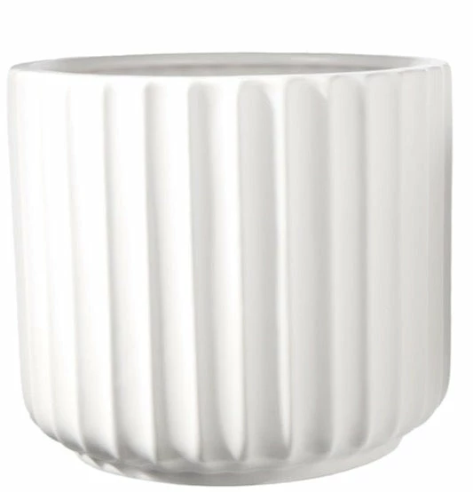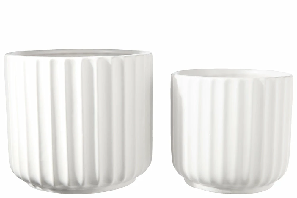 Ceramic Round Pot with Embossed Vertical Ribbed Design Body Set of Two Matte Finish White