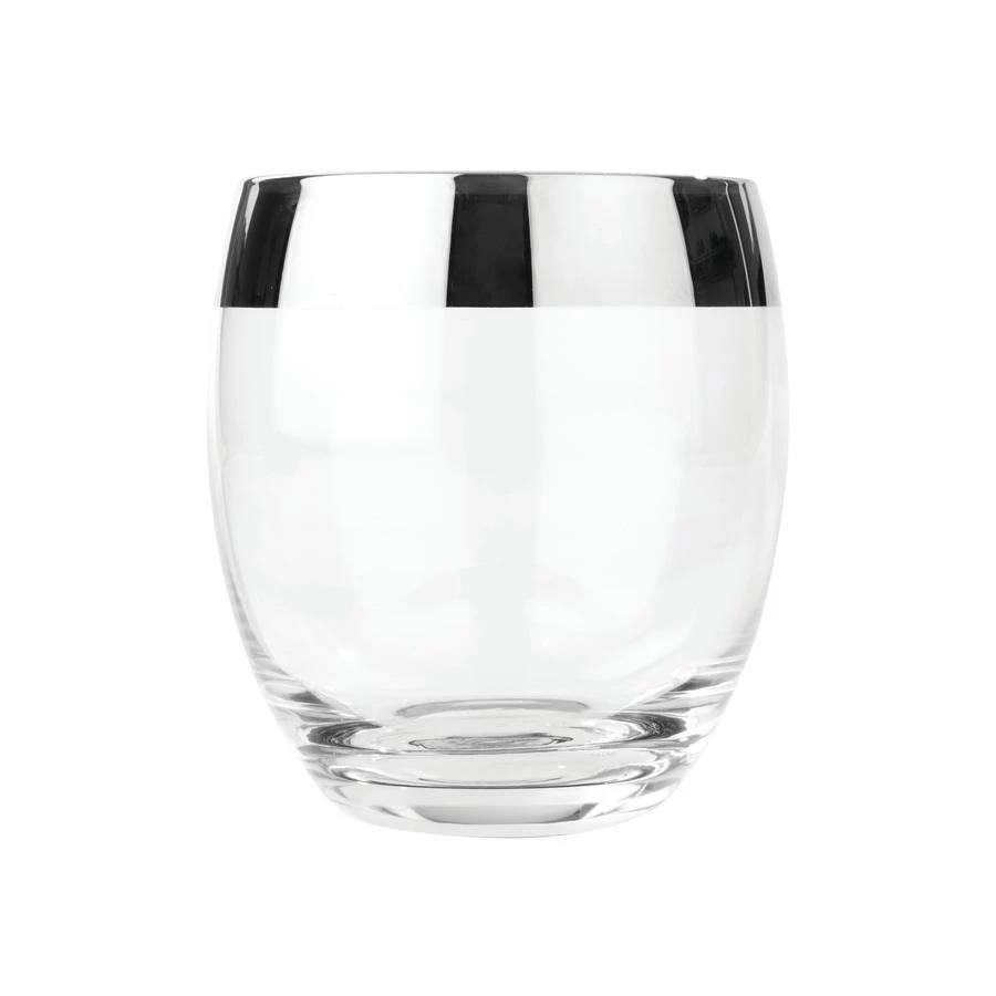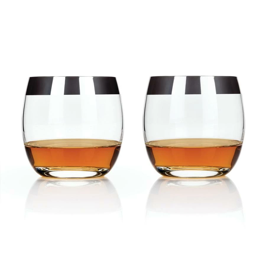 This pair of crystal tumblers resurrects the streamlined aesthetics of mid-century modern design, with sleek chrome-painted rims worthy of the corner office.