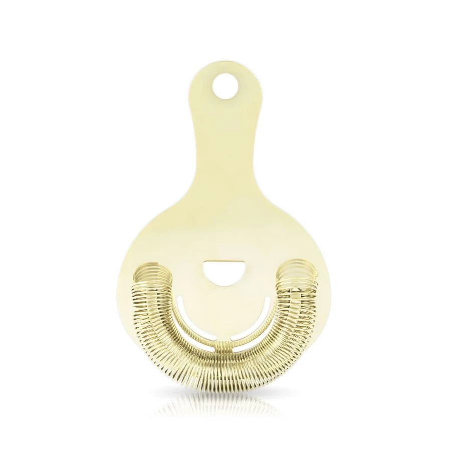 An unobtrusive flat handle, broad face, and tightly coiled spring define our professional-grade gold Hawthorne strainer, while two symmetrical sets of perforations make split pours second nature.