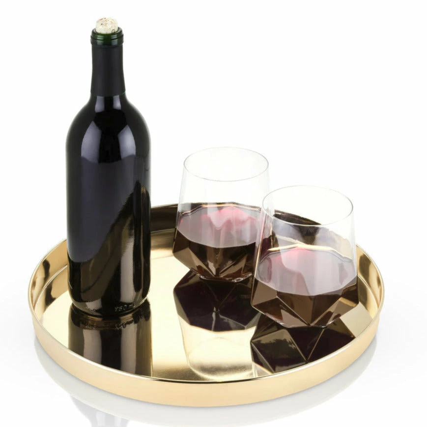 Make entertaining a stunning experience. This contemporary tray features burnished gold plating and a smooth circular rim, optimal for serving a round of your favorite beverage.
